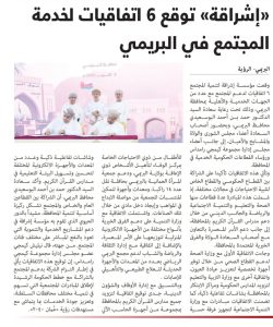 تحت رعاية سعادة السيد الدكتور حمد بن أحمد البوسعيدي، محافظ البريمي، وقعت مؤسسة إشراقة لتنمية المجتمع (٦) اتفاقيات لدعم المجتمع مع عدد من الجهات الخدمية والأهلية بالمحافظة، بحضور أصحاب السعادة أعضاء مجلس الشورى والولاة والمشايخ والأعيان، إلى جانب أعضاء مجلس إدارة مجموعة كيمجي رامداس ورؤساء القطاعات الحكومية الخدمية في المحافظة.